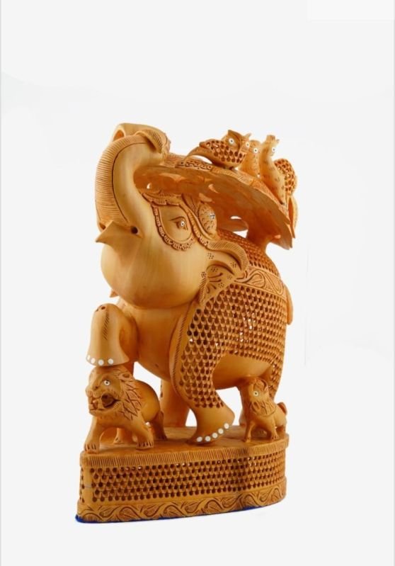 14 Inch Under Cutting Wooden Elephant Statue